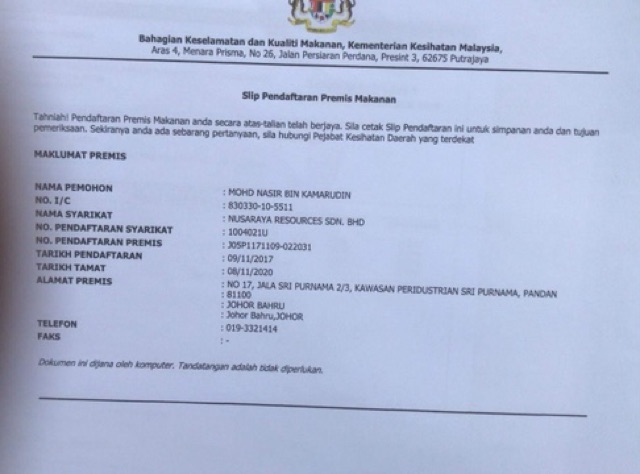 Slip Pendaftaran Premis Makanan : Bila a terlaksana maka b terlaksana, seperti:. Fi untuk perakuan pendaftaran adalah rm dan tempoh sah laku perakuan pendaftaran adalah 3 tahun. Medan selera pekan kemasik telah menjadi pilihan pelaksanaan kempen premis makanan bersih pada tahun ini (2021). Setiap premis makanan yang telah berjaya didaftarkan akan menerima sijil perakuan yang akan di pos dan hendaklah mempamerkan perakuan pendaftaran. Jangan lupa simpan slip pendaftaran sebagai bukti anda telah mendaftar. Berita terbaru cpns 2021/2022 silahkan kunjungi sscn bkn 2021/2022.